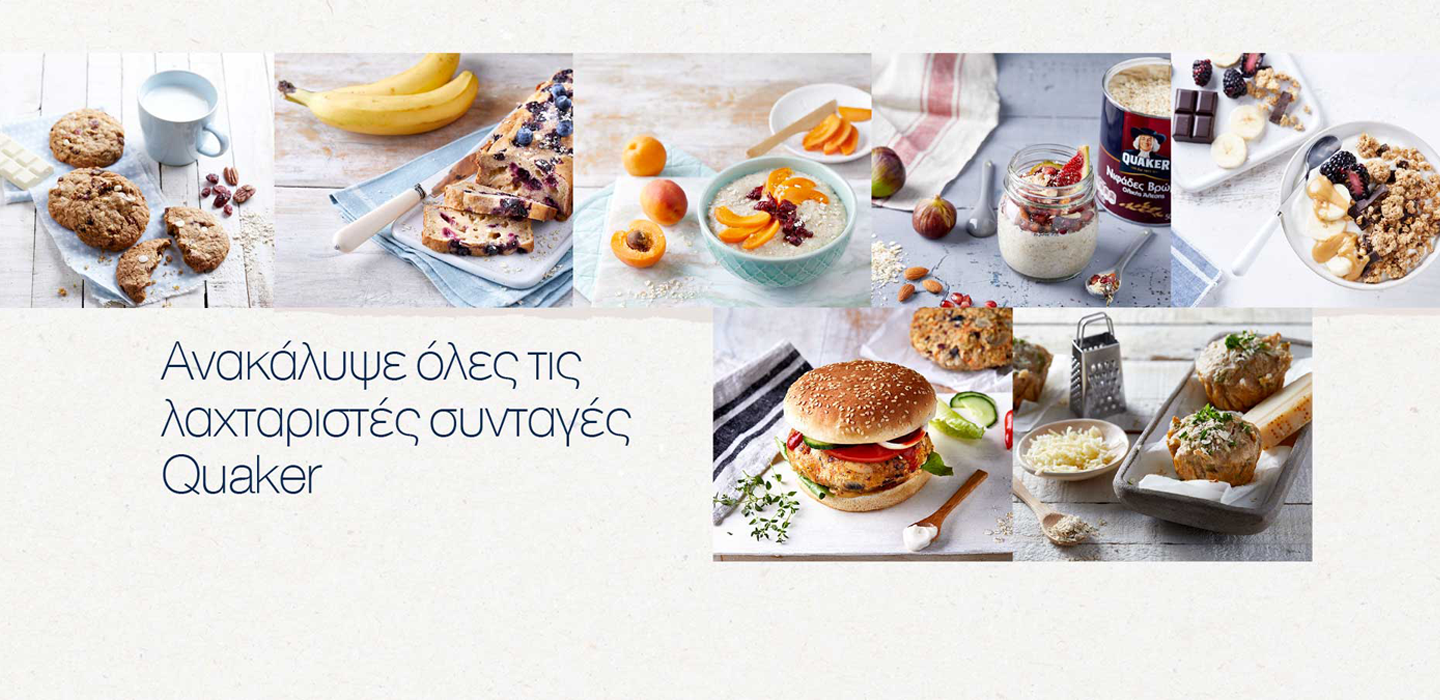 Αφήσαμε τη δύναμη της βρώμης να απελευθερωθεί στους πιο νόστιμους και θρεπτικούς συνδυασμούς! Βρείτε τις συνταγές που σας ταιριάζουν, πάρτε έμπνευση για να φτιάξετε τις δικές σας και ανακαλύψτε πόσες γεύσεις και χρώματα μπορεί να πάρει η βρώμη Quaker.
